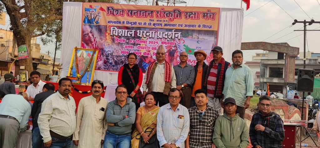 दिनांक 3/12/2024 को विश्व सनातन संस्कृति रक्षा मंच के द्वारा आयोजित में प्रांतीय गोर्खाली समाज छत्तीसगढ़ के पदाधिकारियों व सदस्यों कुल 63 सदस्यों ने अपनी उपस्थिति दर्ज कराई! समाज के प्रांतीय अध्यक्ष के.बी.गौतम ने धरना प्रदर्शन में अपना नारा जय काली!आयो गोर्खाली! उद्बोधन किया गया उन्होंने बताया कि हम गोर्खा मां काली के उपासक और भगवान गोरखनाथ के अनुयाई हैं इसी क्रम में कहा कि, भगवान राम हमारे अराध्य हैं! कहा और बंगला देश में हिन्दूओं पर हो रहे अत्याचार व व्याभिचार के बारे में बताया कि, पुरुष का कच्छा अन्डरवियर खोल कर देखा जा रहा है वह हिन्दू है या नहीं यदि हिन्दू है तो उसे मार दिया जाता है! इतना ही नहीं बाप के सामने बेटी का बलात्कार,पति के सामने पत्नी का बलात्कार, बच्चे के सामने मां का बलात्कार किया गया है! बंगला देश में हिन्दूओं पर ऐसे दुर्दांत अपराध हो रहा है! जो कि असहनीय है! इसलिए हम प्रांतीय गोर्खाली समाज के सभी सदस्यों का इस धरना प्रदर्शन में समर्थन करते हैं! ऐसे अत्याचार विरूद्ध लड़ाई में हम सदैव विधर्मी से लड़ने को तैयार हैं! वैसे भी हम लड़ाका कौम के लोग हैं! आज से सोलह सौ साल पहले भगवान गोरखनाथ ने विधर्मीयों का विनाश करने के लिए अपना संजीवनी मंत्र से सैनिक तैयार किया और इस सेना का नाम गोरखा रखा ! इस प्रकार से नेपाल राज्य में गोर्खाओं की नींव रखी गई! हमारे पुरखों ने देश की रक्षा और धर्म की रक्षा में सदैव आगे रहे! जो आज भी आर्मी में भारत ही नहीं ब्रिटेन इत्यादि राष्ट्र गोर्खाओं को पहला नंबर देते हैं! अन्त में एक बार पुनः जय काली!आयो गोर्खाली!का नारा देते हुए प्रांतीय अध्यक्ष ने अपना उद्बोधन सम्पन्न किया!